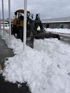 今回の除雪作業では、アースサポート様リサイクル課の皆様にご協力いただきました。機械で雪を移動していただいたおかげで、駐車スペースや通路が確保され、安心して通常業務を進めることができました。